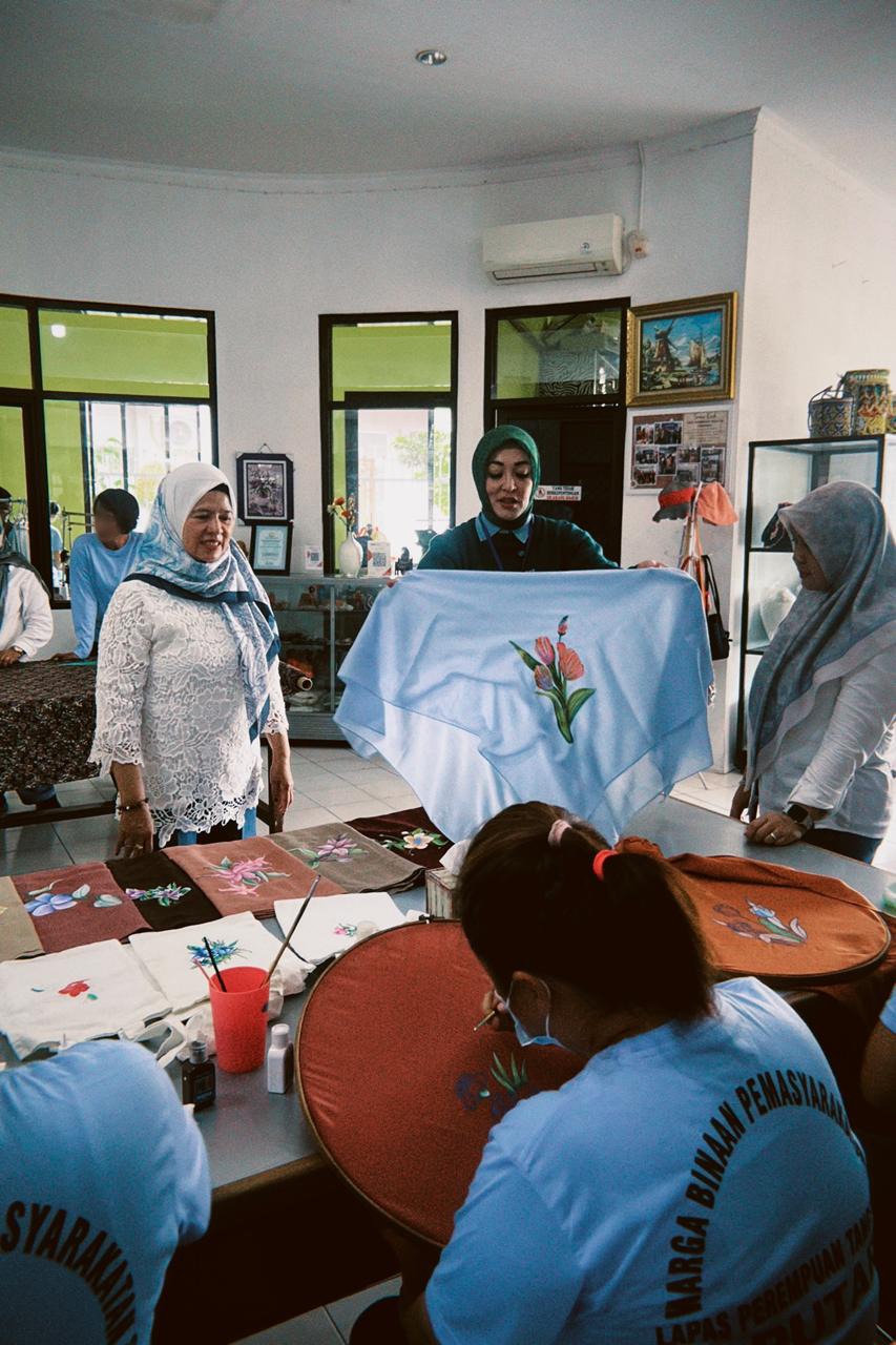 Karya hijab lukis yang dihasilkan warga binaan Lapas Tangerang menampilkan ketelitian, kesabaran, dan ekspresi personal. Setiap helai menjadi medium untuk belajar konsistensi dan tanggung jawab terhadap kualitas, sekaligus membangun rasa percaya diri melalui karya yang memiliki nilai estetika dan pasar.